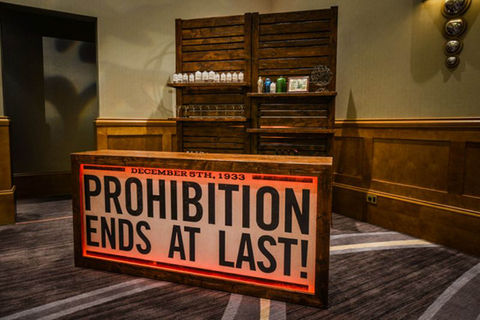 In one room, we had two beer experts leading tastings on both German and local Texas beers at a large wooden craft bar with lit marquee letters spelling “PROST” (“Cheers!” in German) mounted on top. Another room was used as a game room with custom cornhole, shuffleboard, and horseshoes. This room featured a “lounge-y beer garden” vibe using company branded hedge walls and tasteful rattan garden furniture.