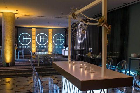We covered the entire ballroom floor with seamless white flooring to provide the room with a blank canvas. From there, we brought in a floral installation to hang from the ceiling, floral walls, and photo backdrops surrounded by “growing” florals at the base of each wall, a custom branded neon logo, mirrored furniture to reflect the florals from every angle, and beautiful gold and white furniture groupings to tie the entire room together.